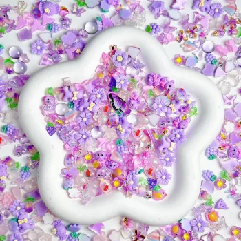 Sweet Taro Purple 3D Resin Nail Charms - Grape, Bear, Flower, Butterfly Mix